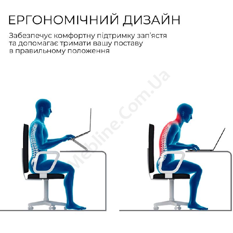 - Піднімає ноутбук до рівня очей або до рівня другого монітора, забезпечує кращу циркуляцію повітря.