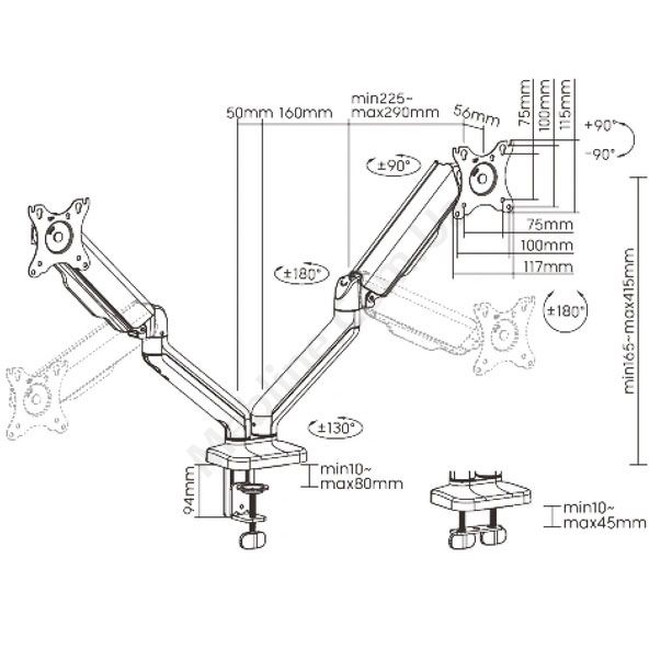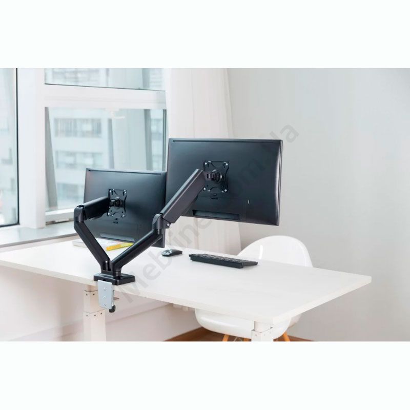 Настільний кронштейн для двох моніторів до 32 дюймів, чорного кольору.