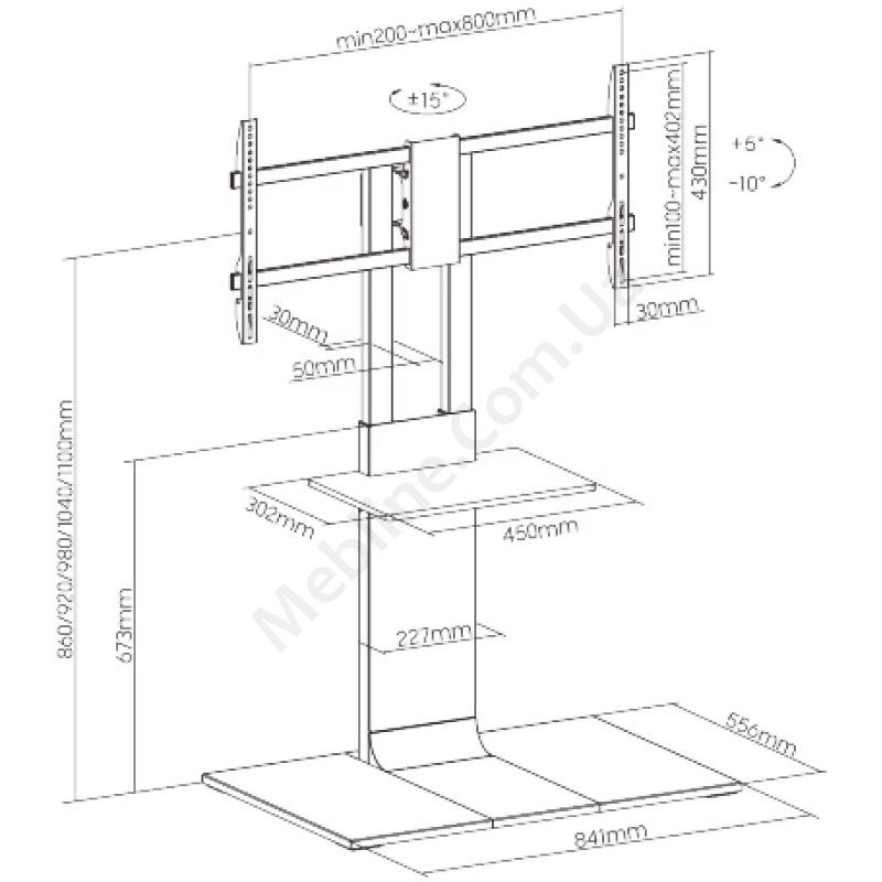 Підлоговий кронштейн стійка для телевізора до 90 дюймів з полицею.