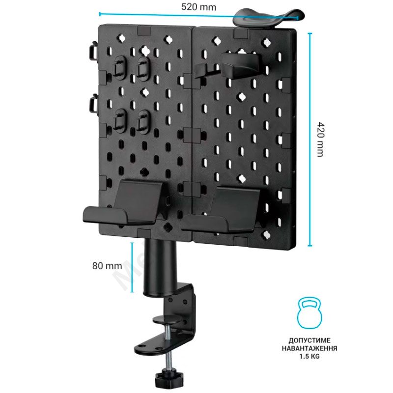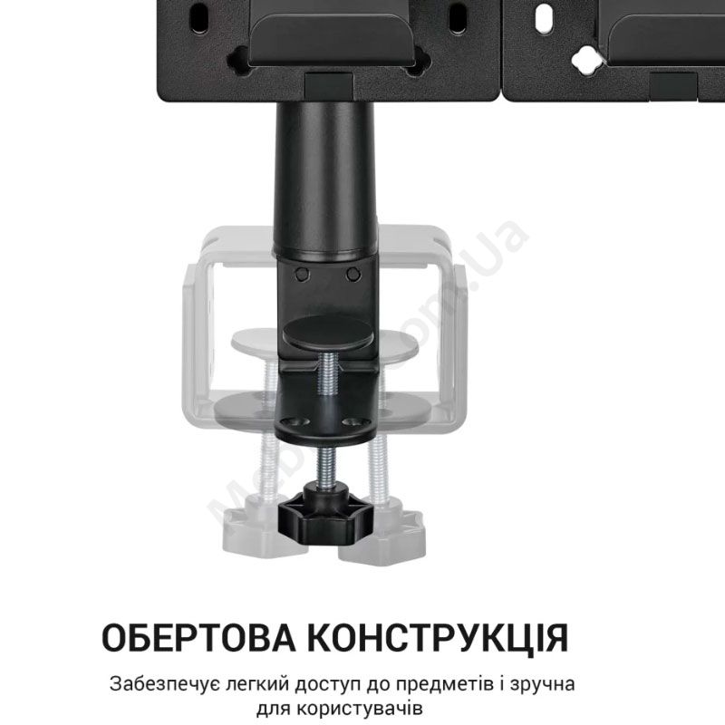 - Кріпиться до поверхні за допомогою обертового затискача.