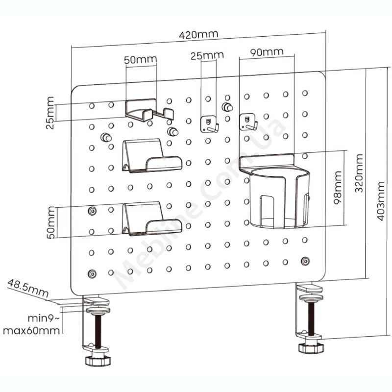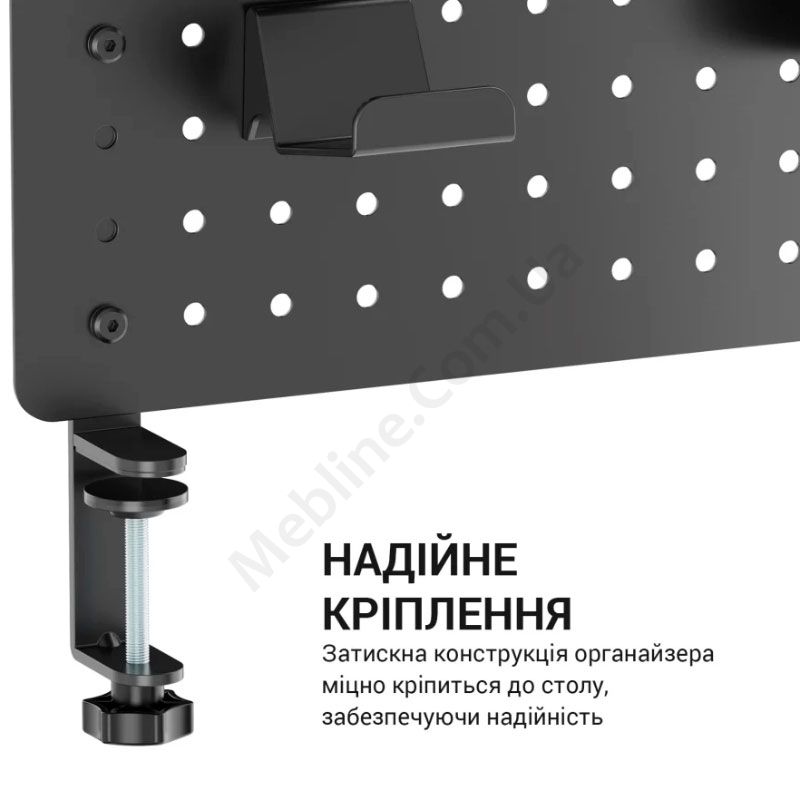 - Кріпиться до поверхні за допомогою обертового затискача.