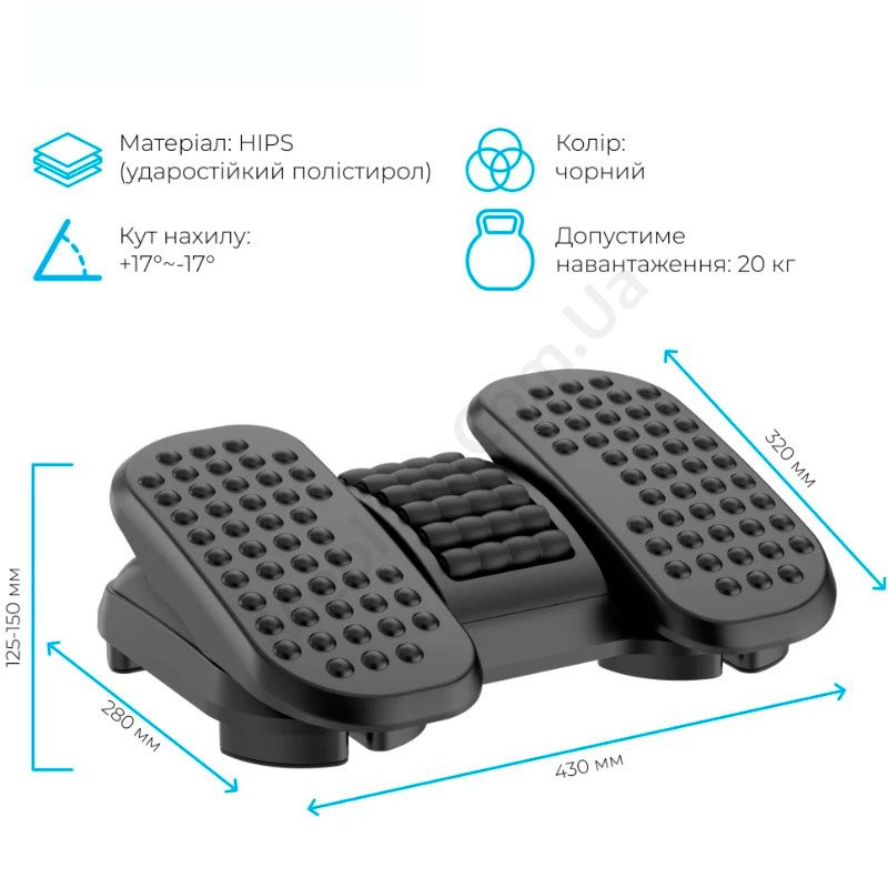 Підставка для ніг з роликами, регулюванням кута нахилу та висоти.