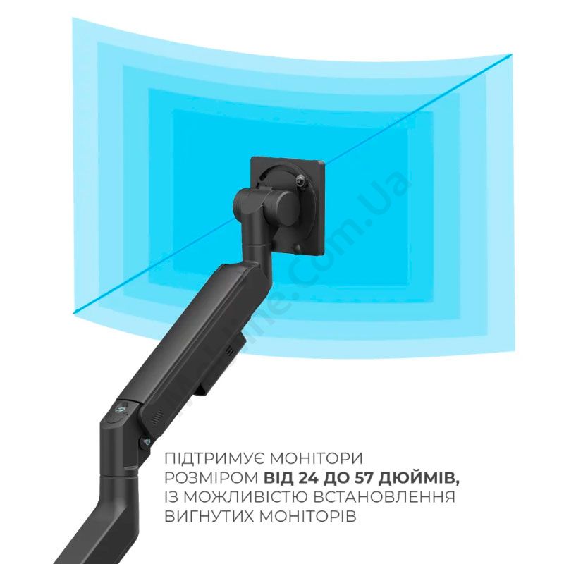 - Підходить для моніторів розміром від 24 до 57 дюймів, вагою до 27 кг.