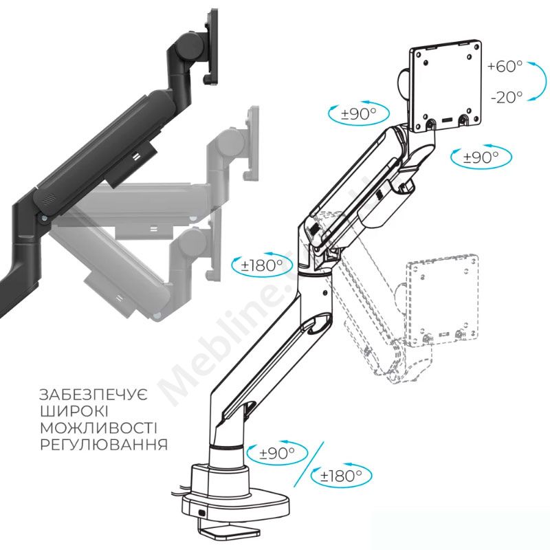 Настільний кронштейн для монітора до 57 дюймів, чорного кольору.