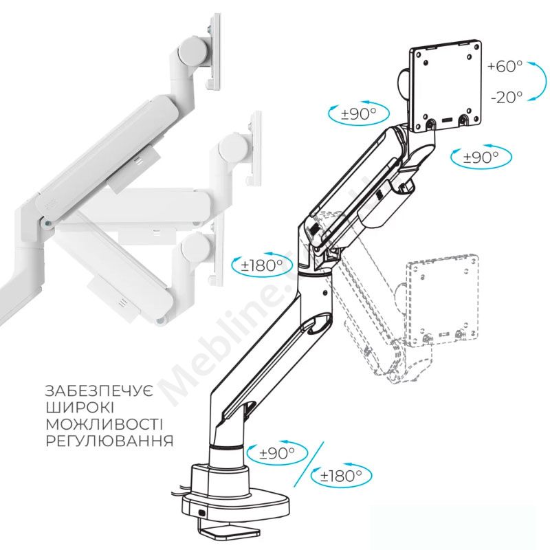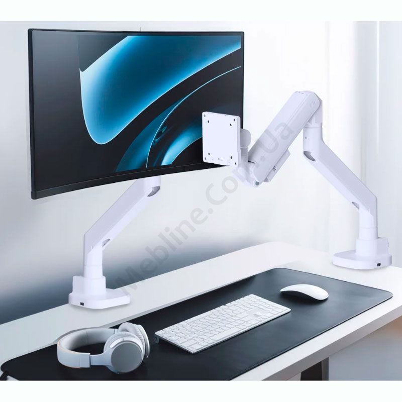 Настільний кронштейн для монітора до 57 дюймів, білого кольору.