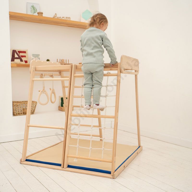 Маленька трапеція з кільцями, матом, гіркою, канатом з круглим сидінням, гойдалкою, канатом зі сферами.