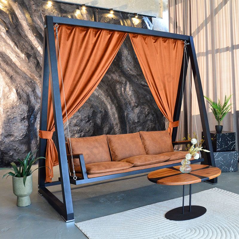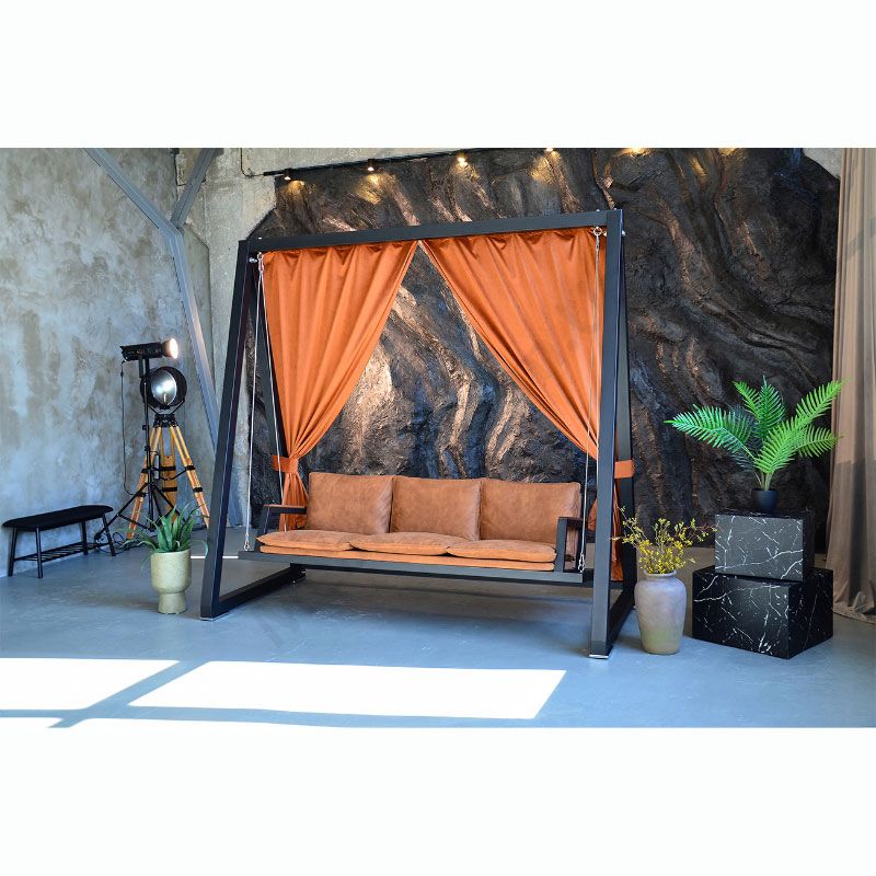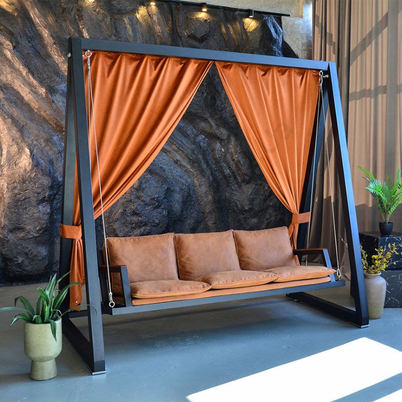 Чотиримісна садова гойдалка преміум класу коричневого кольору.