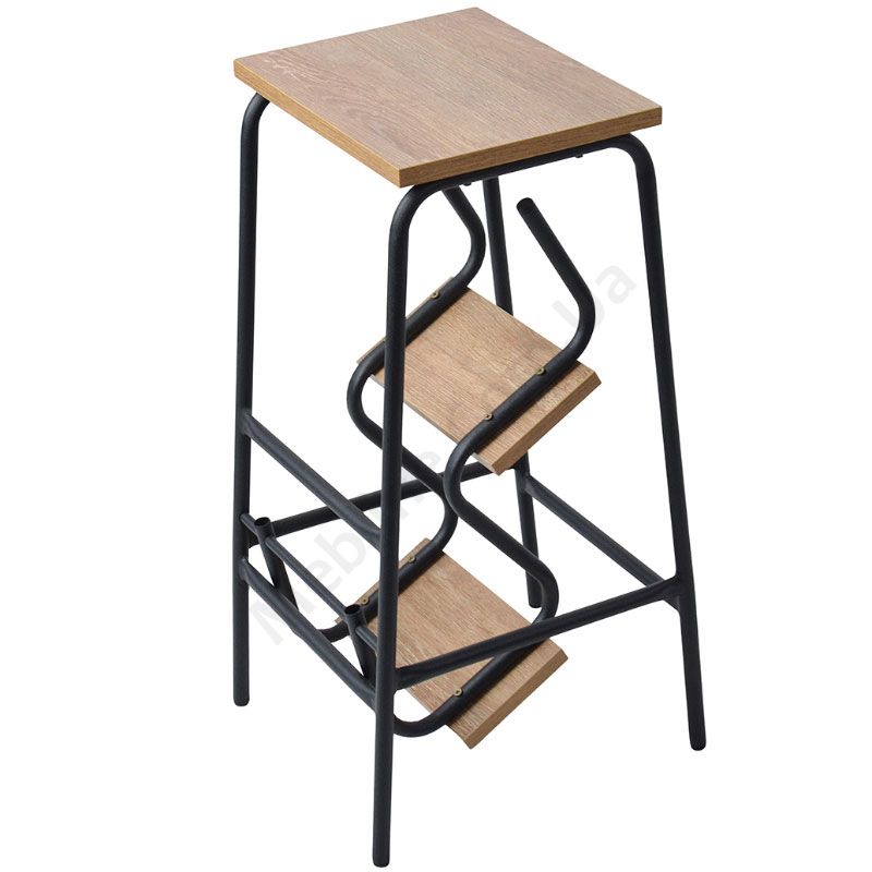 Стілець-драбинка кольору античного дуба на металевому чорному каркасі.