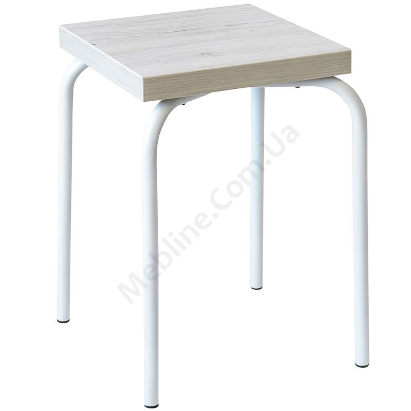 Квадратний табурет кольору Аляска на білому металевому каркасі.