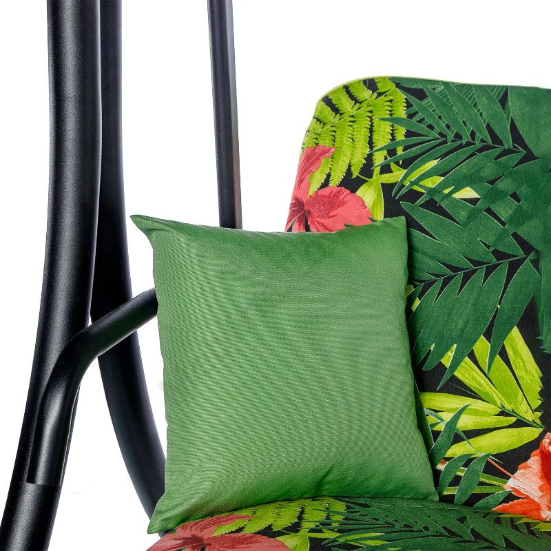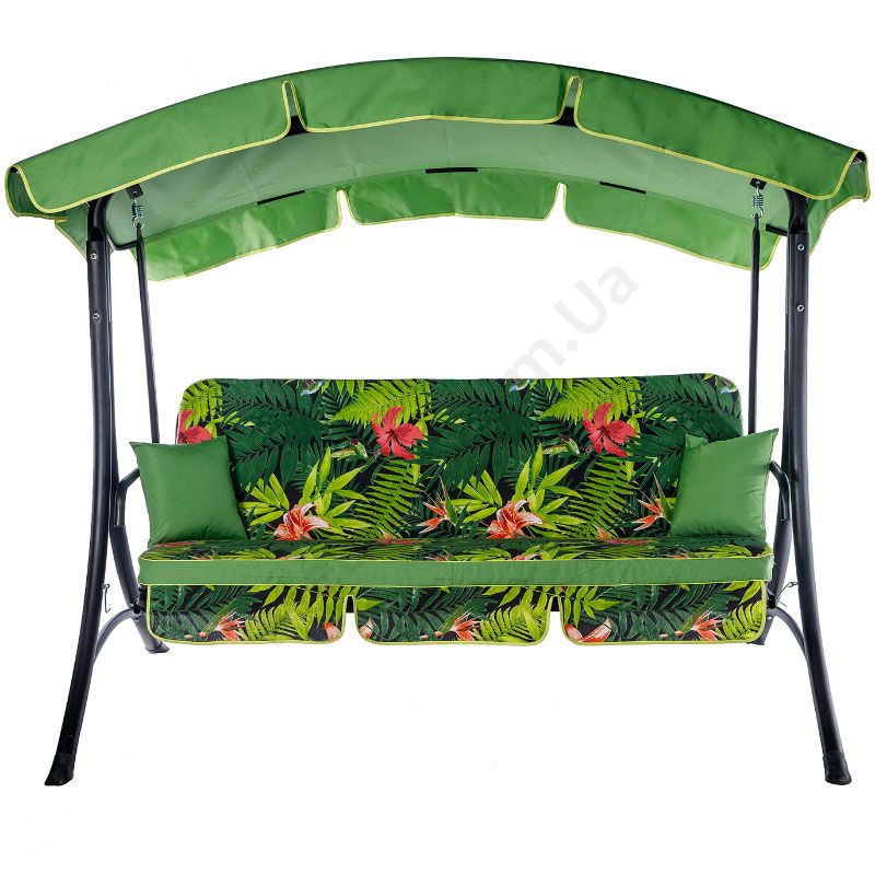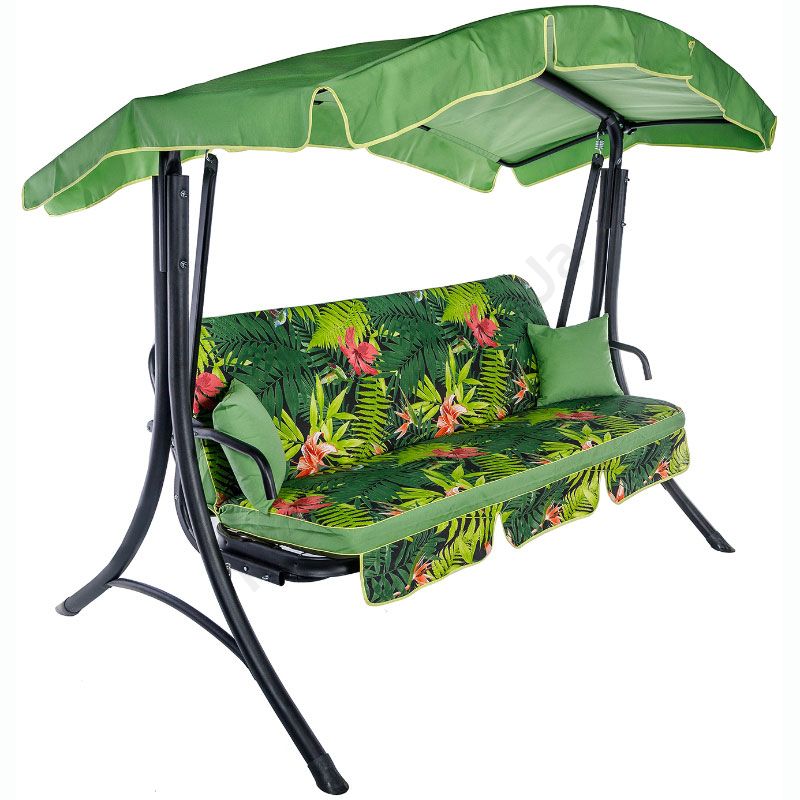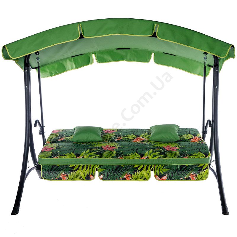 Гойдалка з розкладним диваном та тентом, зеленого кольору з принтованим матрацом.