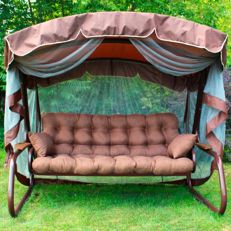 Тент з москітною сіткою коричневого кольору для садової гойдалки Аланія.