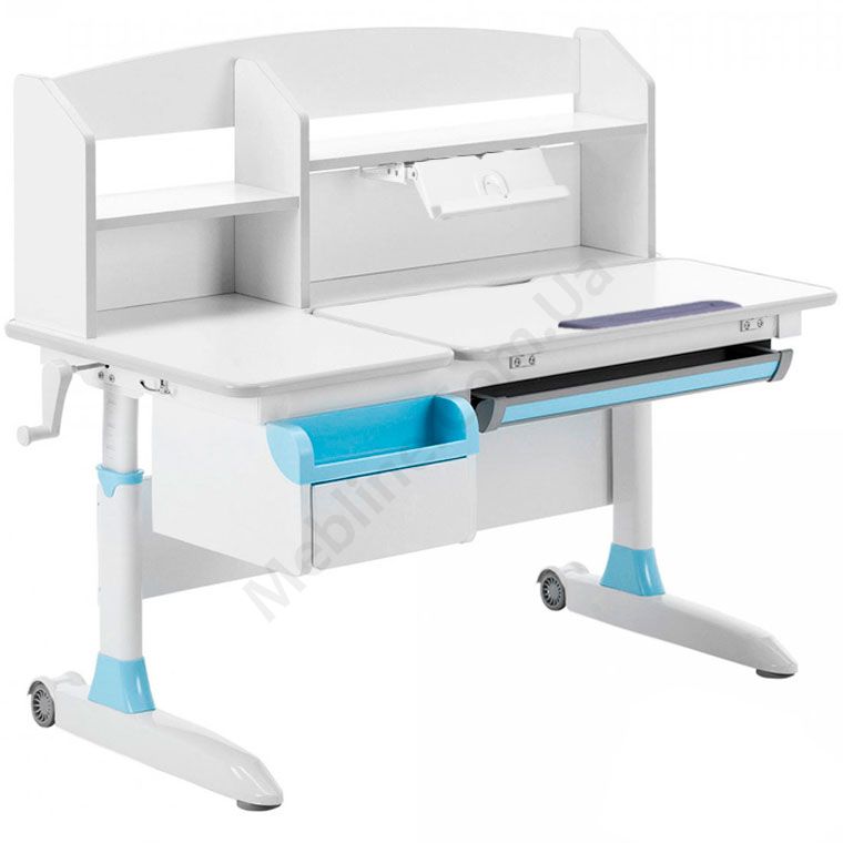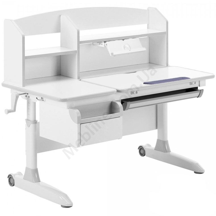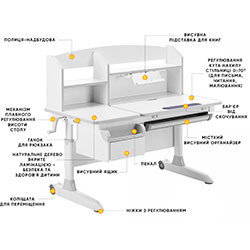 Дерев’яна парта білого кольору з надставкою, регулюванням нахилу та висоти.