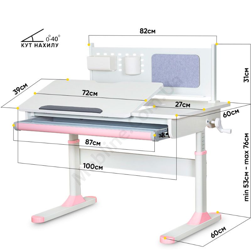 - Висота стола регулюється за допомогою механізму плавного регулювання.
