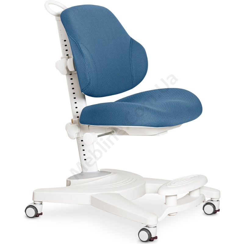 Ортопедичне крісло для школяра синього кольору з регулюванням глибини, висоти та підставки для ніг.