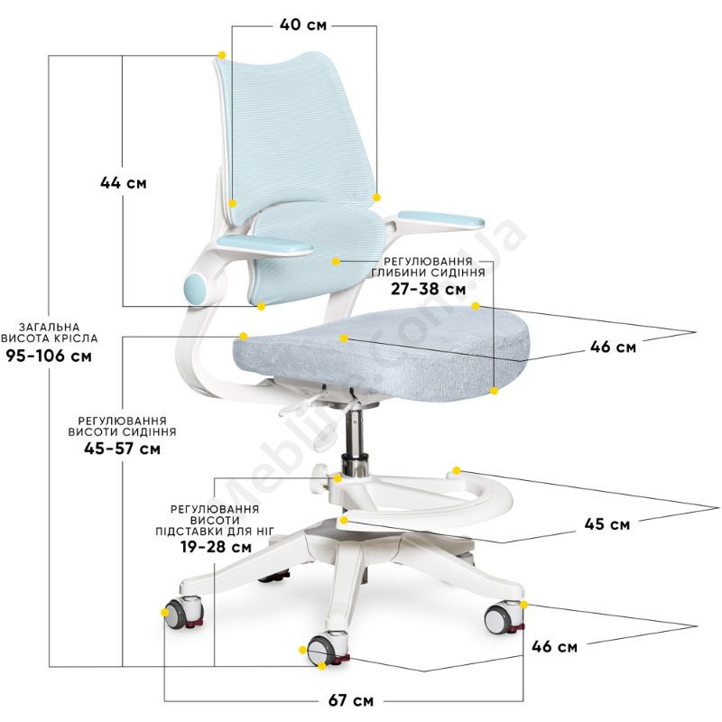 - Регулювання висоти сидіння за допомогою газліфта 3-го класу.