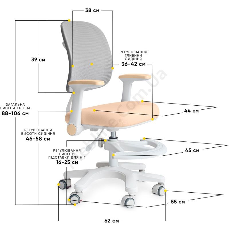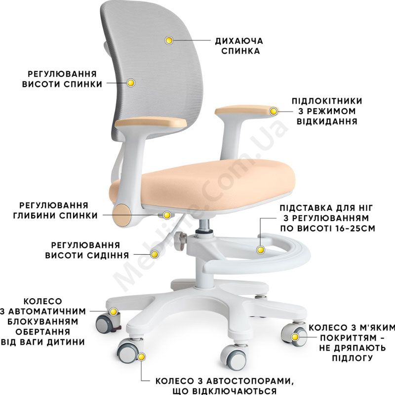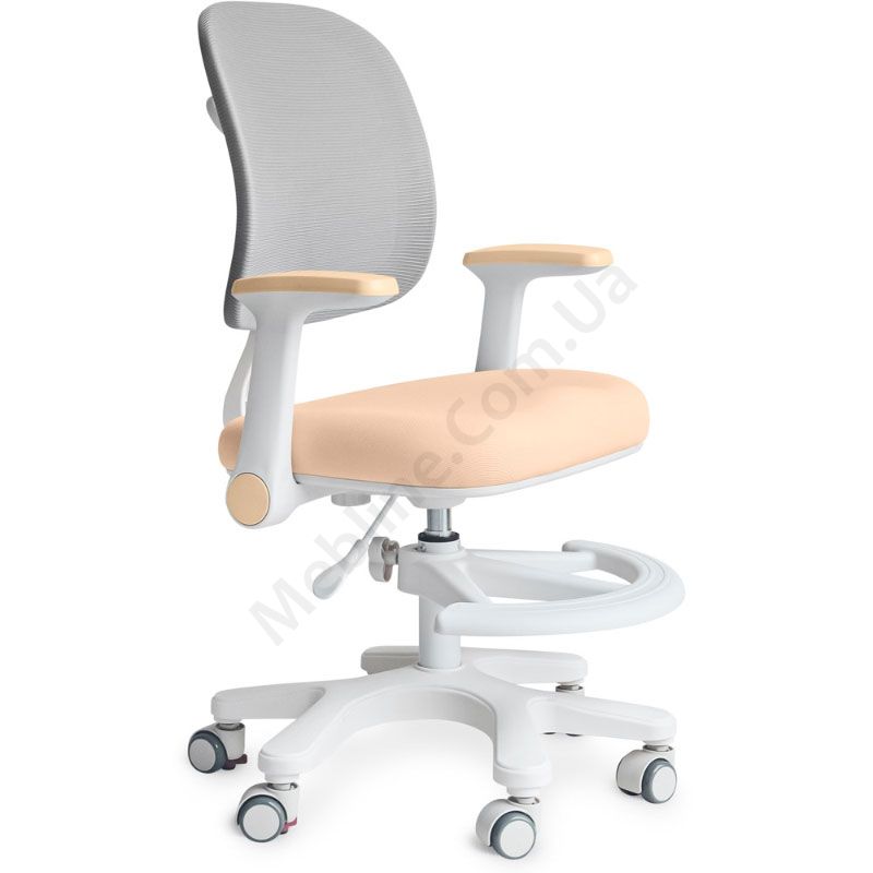 Ортопедичне крісло для школяра персикового кольору з регулюванням глибини, висоти та підставки для ніг.
