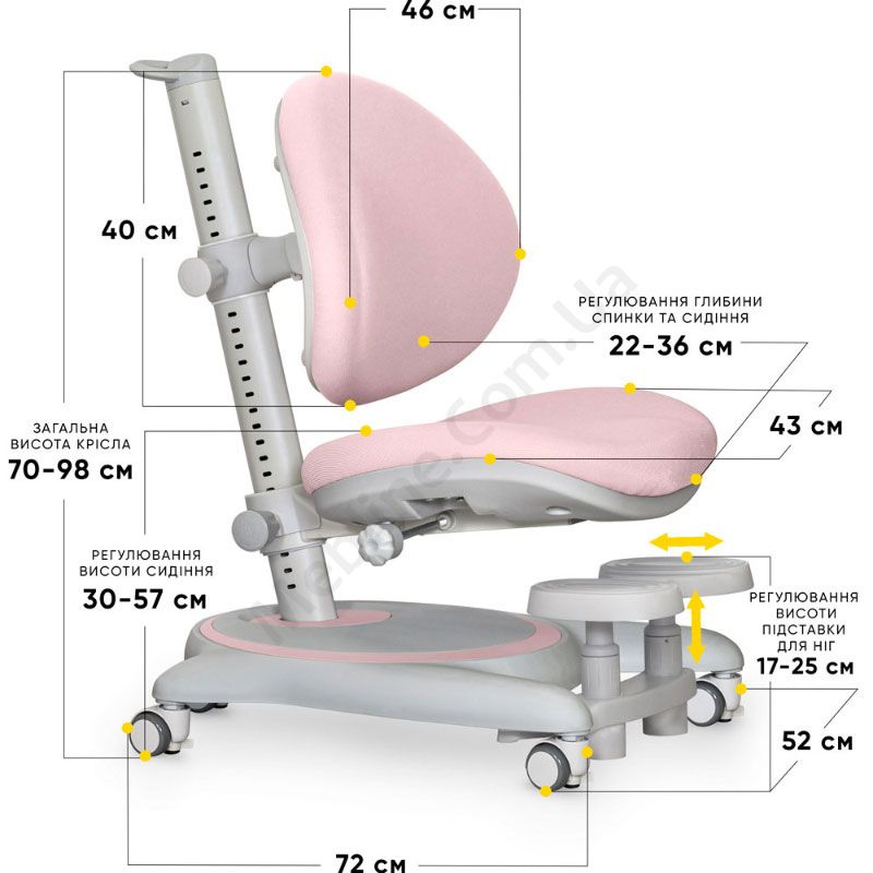 Ортопедичне крісло рожевого кольору з регулюванням глибини, висоти та підставки для ніг.