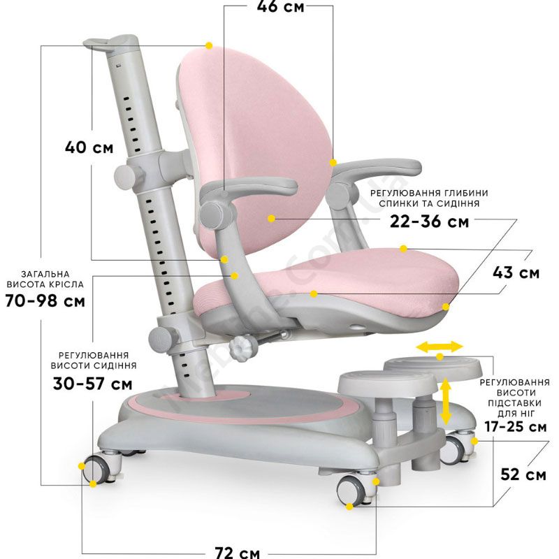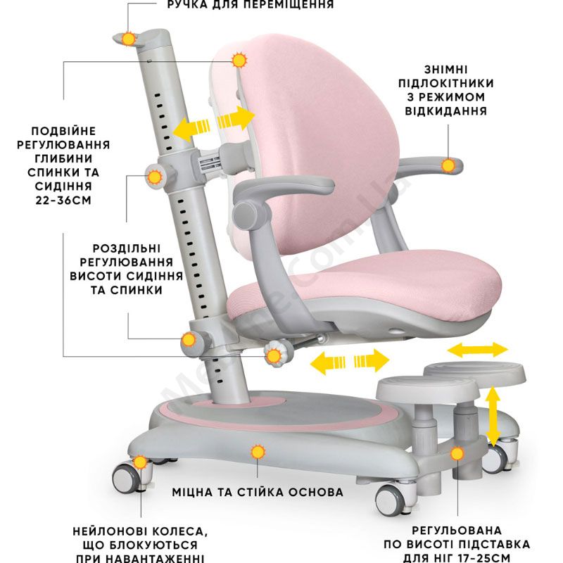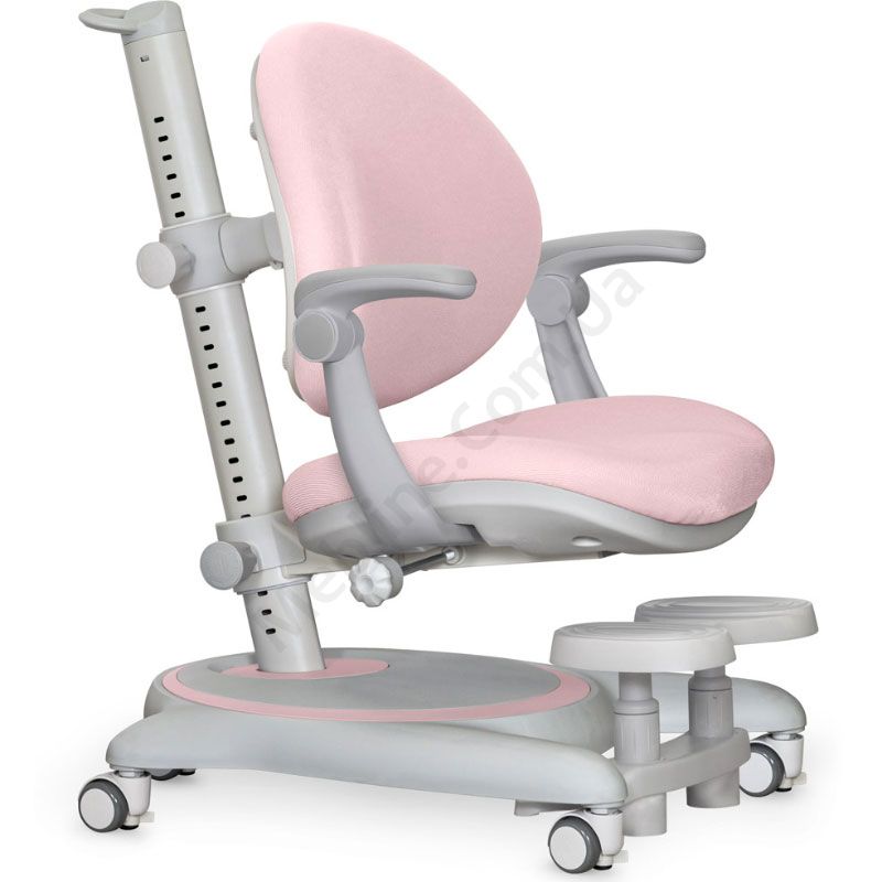 Ортопедичне крісло рожевого кольору з підлокітниками, регулюванням глибини, висоти та підставки для ніг.