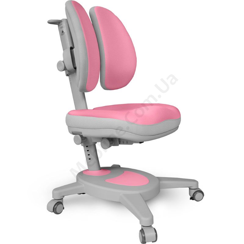 Ортопедичне крісло сіро-рожевого кольору з подвійною спинкою, регулюванням глибини та висоти.