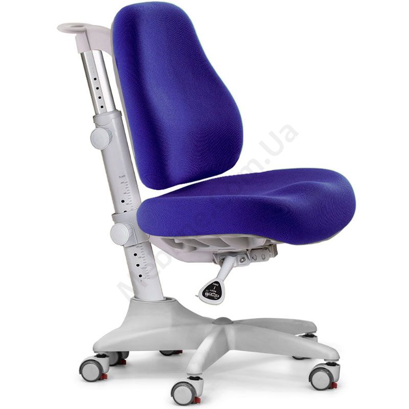 Ортопедичне крісло синього кольору з регулюванням глибини та висоти.