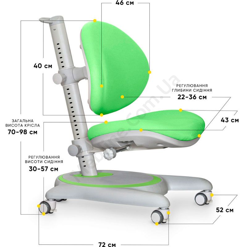 Ортопедичне крісло зеленого кольору з регулюванням глибини та висоти.