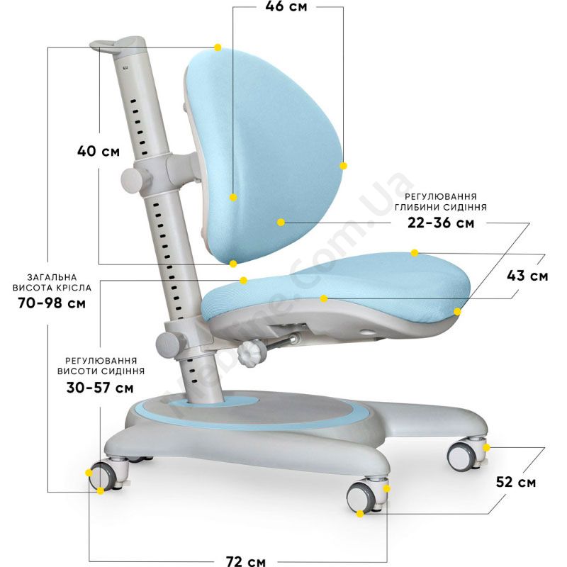 Ортопедичне крісло блакитного кольору з регулюванням глибини та висоти.