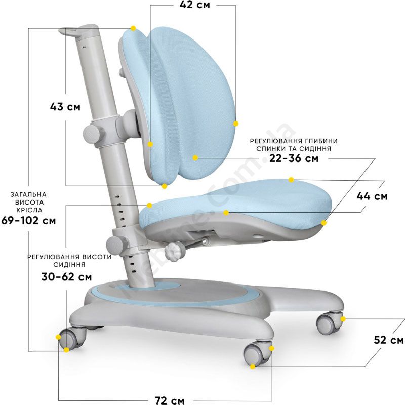 Ортопедичне крісло блакитного кольору з подвійною спинкою, регулюванням глибини та висоти.