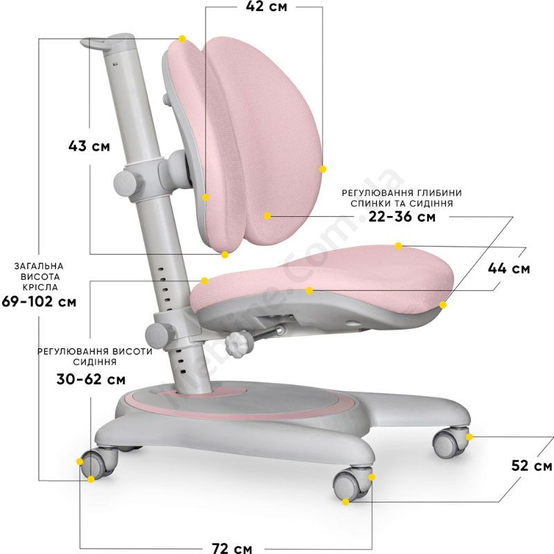 Ортопедичне крісло рожевого кольору з подвійною спинкою, регулюванням глибини та висоти.