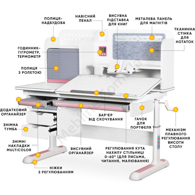 У магазині Ви можете купити Дитячий стіл Winnipeg Multicolor Plus WG Pink (BD-630 WG + PN з тумбою) за доступною ціною та доставкою по всій Україні. Обирайте Парта від фабрики Mealux для облаштування дитячої в інтернет магазині меблів.