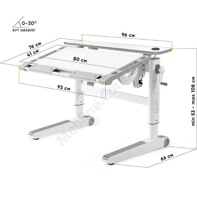 - Кут нахилу стільниці регулюється за допомогою газліфта в діапазоні 0°-30°.