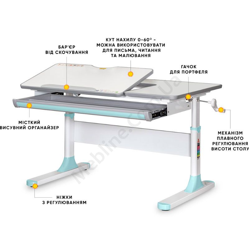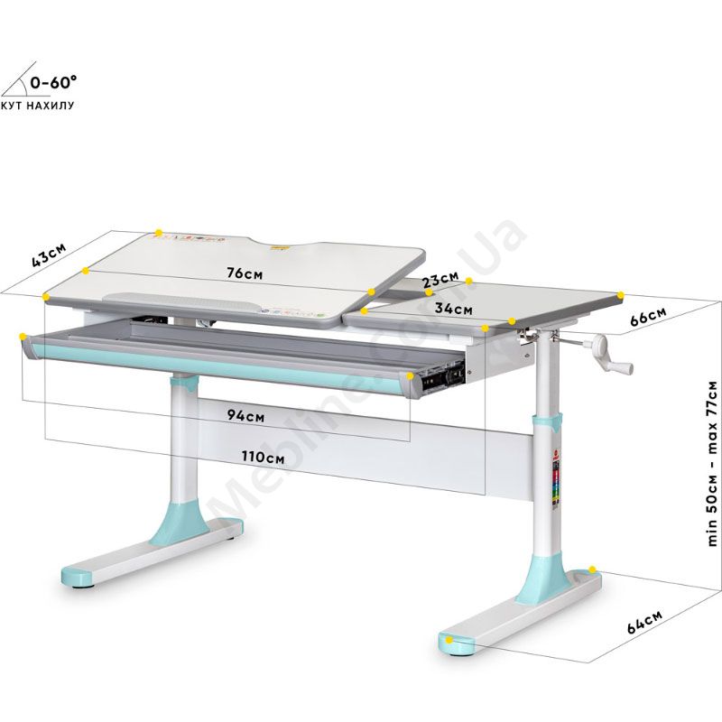 Зростаюча парта з органайзером та регулюванням нахилу та висоти.