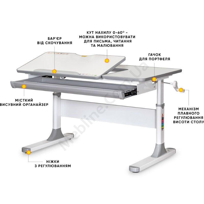 Зростаюча парта з органайзером та регулюванням нахилу та висоти.