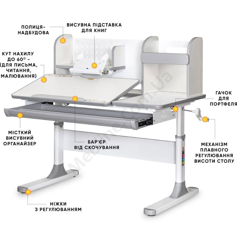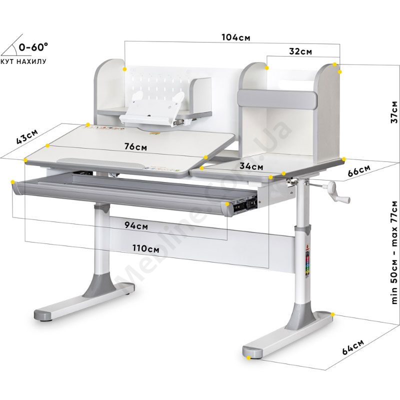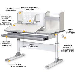 Зростаюча парта з органайзером, надбудовою та регулюванням нахилу та висоти.