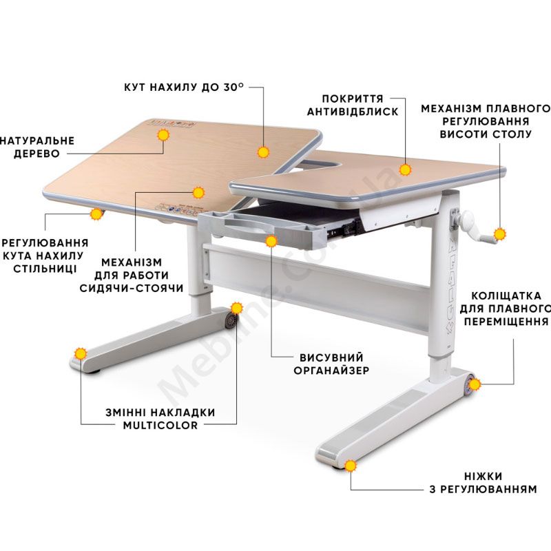 Дерев’яна зростаюча парта з регулюванням нахилу та висоти.