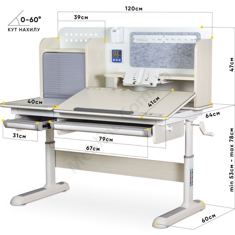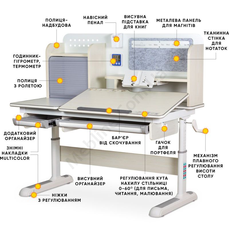 Зростаюча парта з надставкою, органайзерами та регулюванням нахилу та висоти.