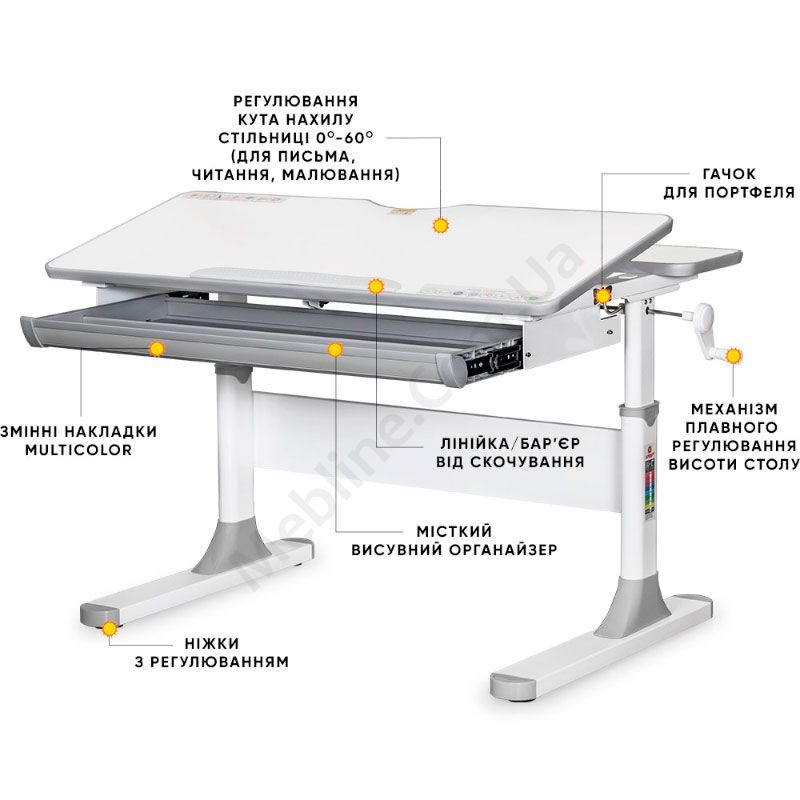 Зростаюча парта з органайзером та регулюванням нахилу та висоти.