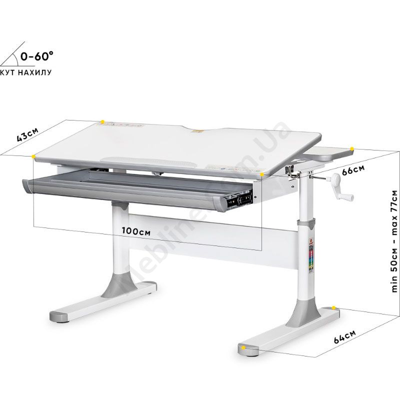 - Кут нахилу стільниці регулюється в діапазоні 0°-60°.