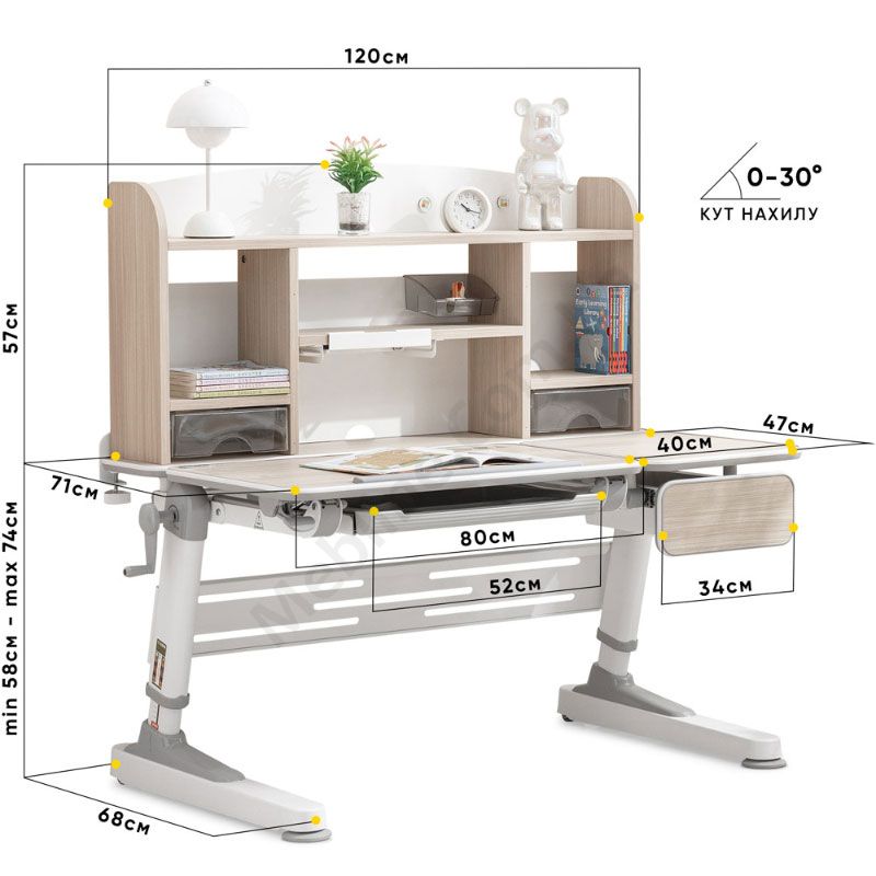 Зростаюча парта з надставкою, органайзером, шухлядою та регулюванням нахилу та висоти.