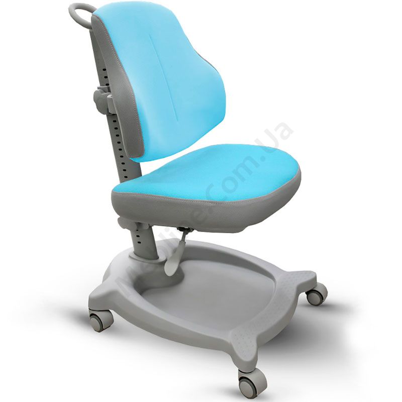 Дитяче ортопедичне крісло блакитного кольору без підлокітниками з регулюванням глибини та висоти.
