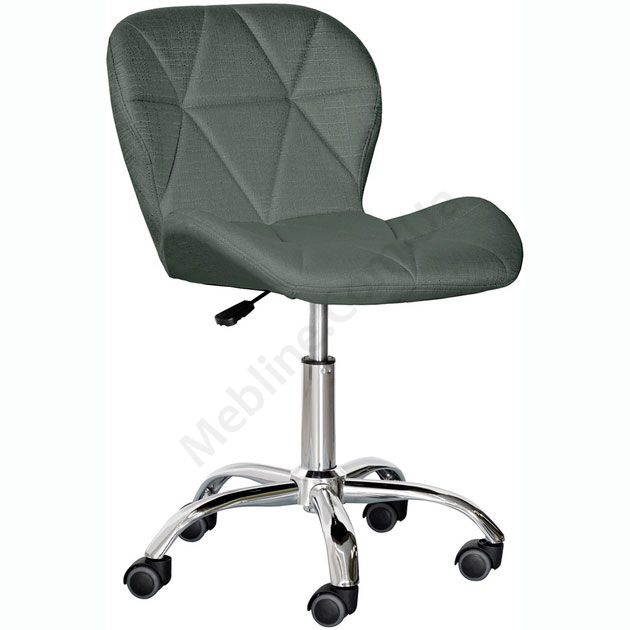 Поворотне крісло темно-сірого кольору без підлокітників на роликах.