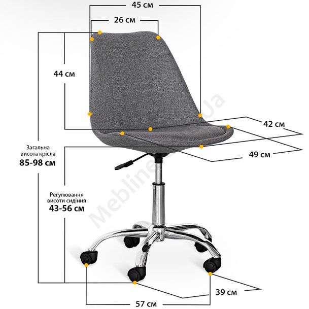 - Висота крісла регулюється за допомогою газліфта 2 класу.