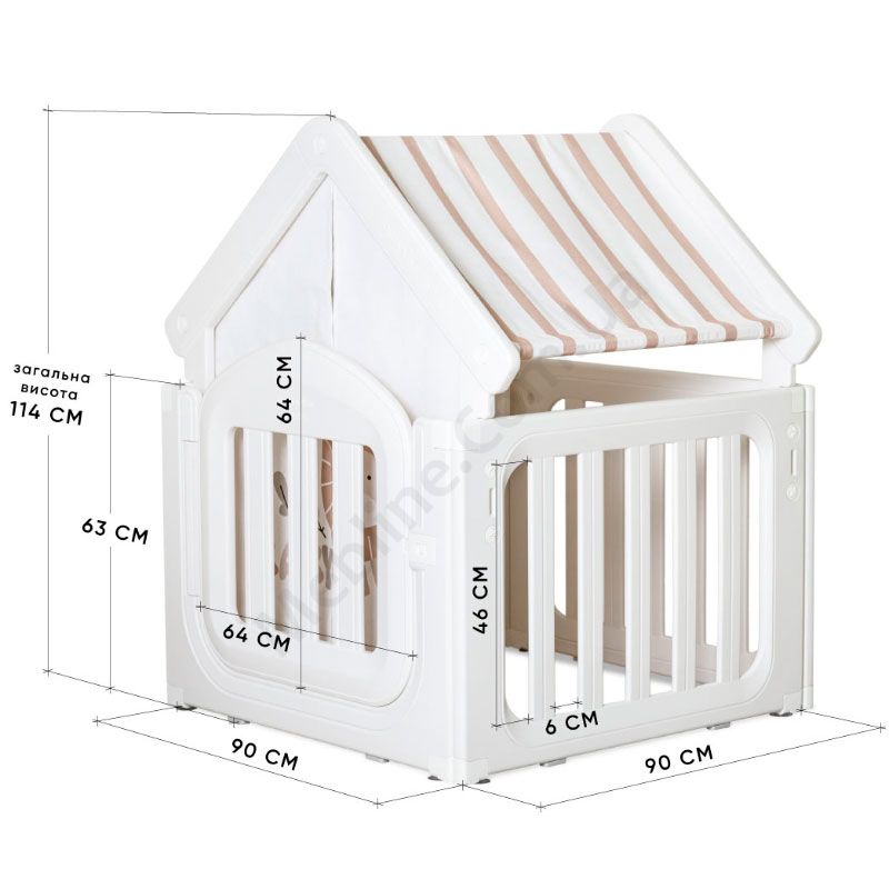 Манеж у вигляді будиночка зі шторками.