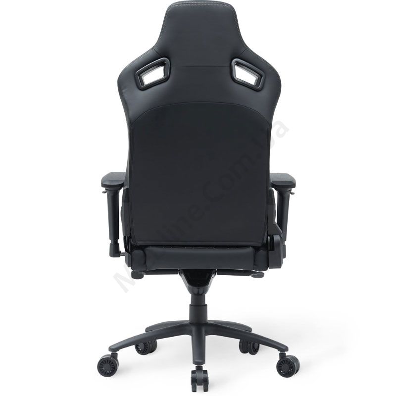 Геймерське крісло чорного кольору з регульованими підлокітниками, подушками Memory Foam та ультифункціональним механізмом.