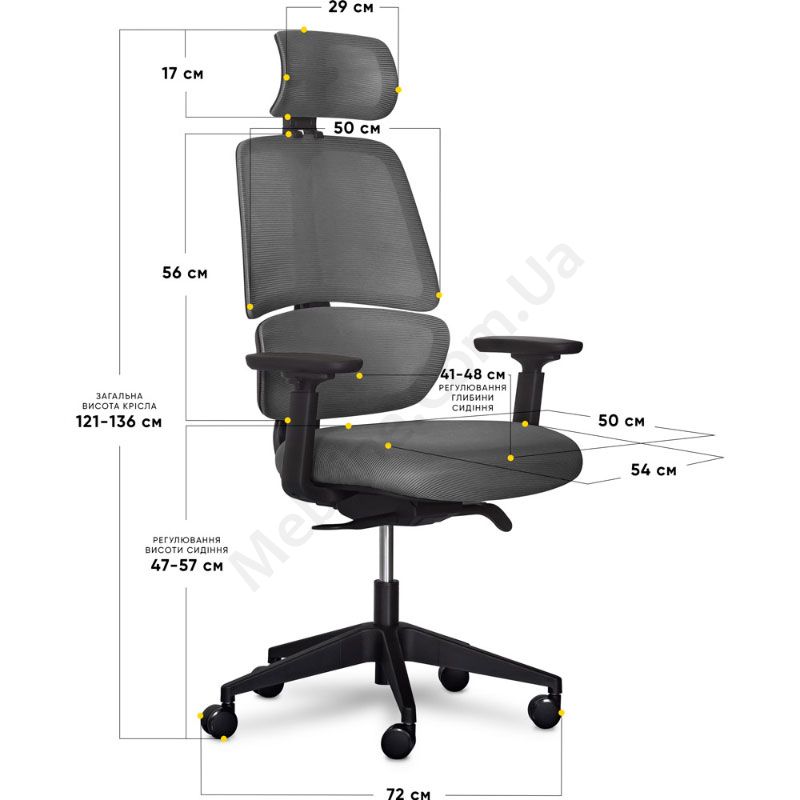 - Висота крісла та обертання регулюється за допомогою Gaslift 3-класу.
