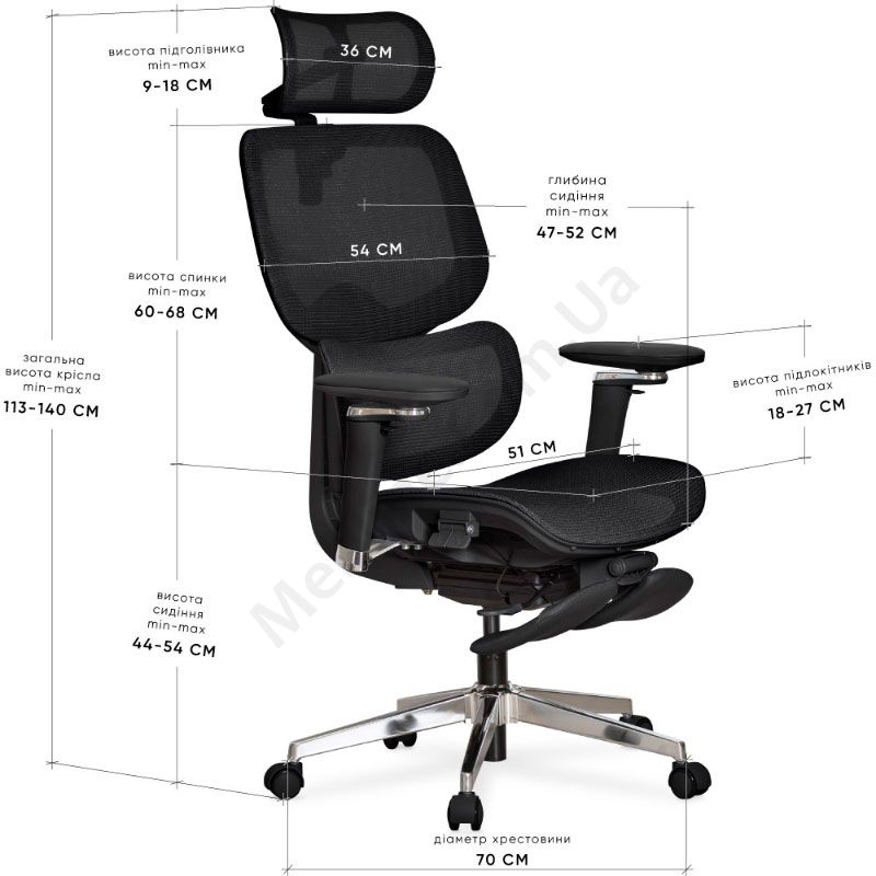 - Регулювання висоти спинки окремо від висоти сидіння.