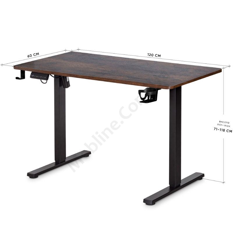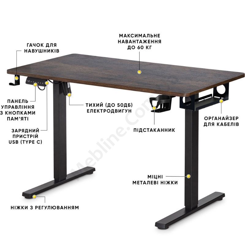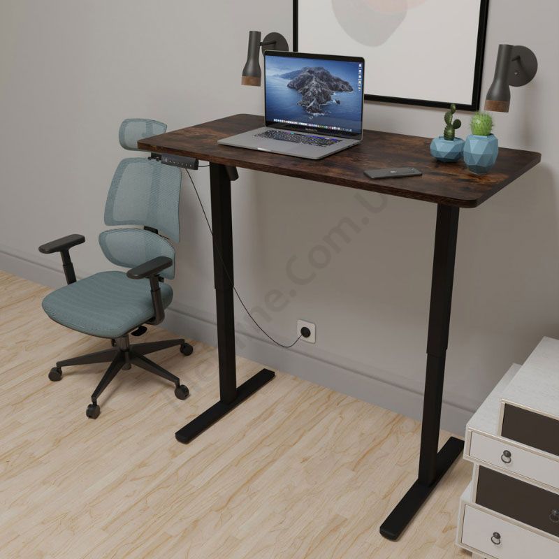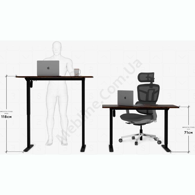 - Стіл регулюється за висотою, що дає змогу працювати сидячи та стоячи.
