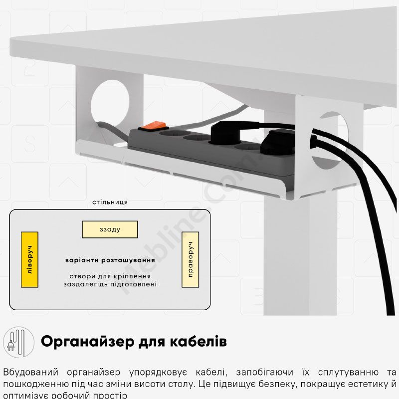 - Під стільницею органайзер для дротів.