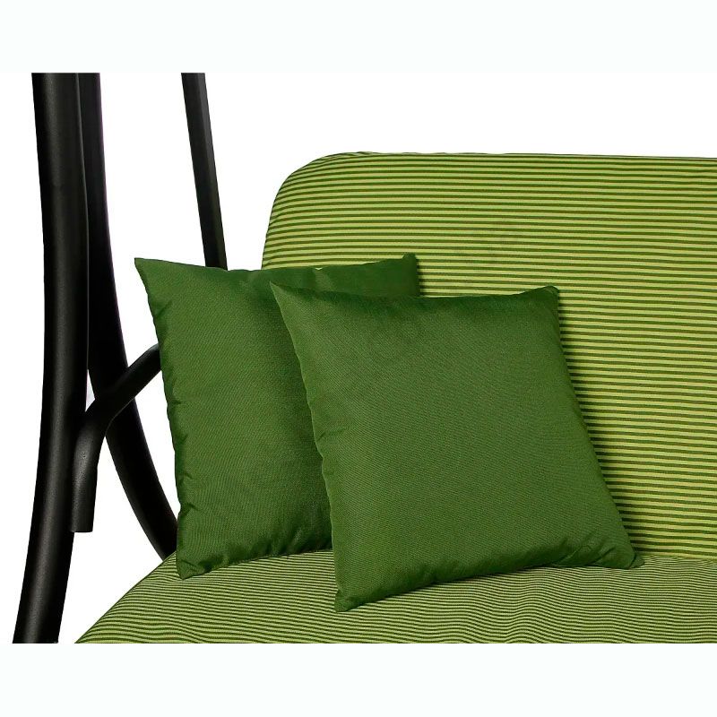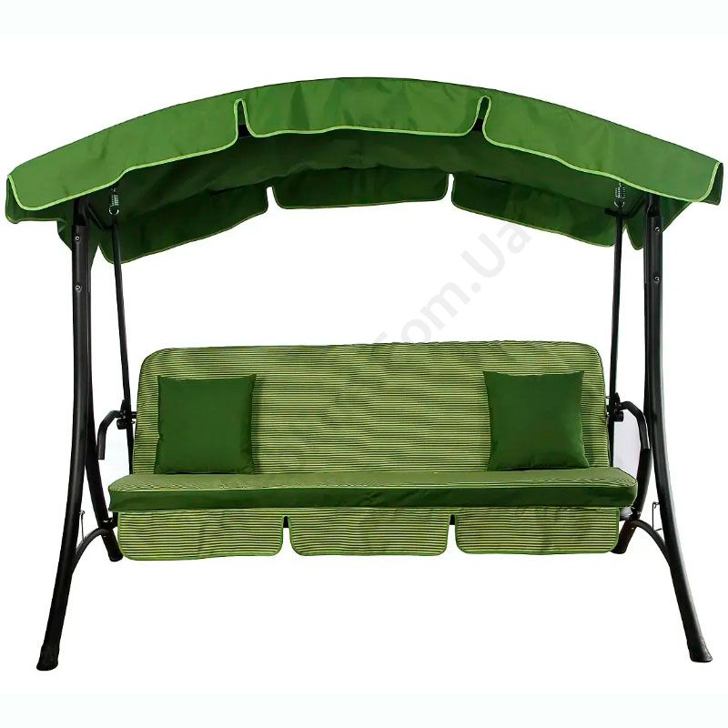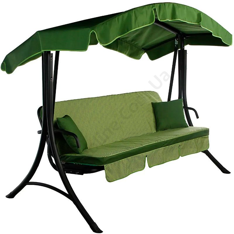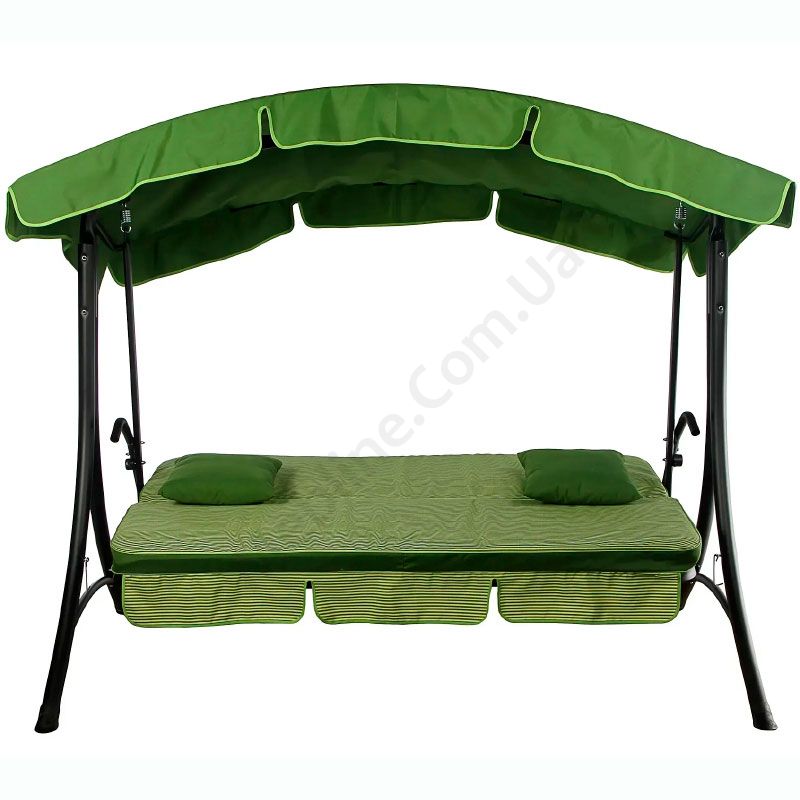 Гойдалка з розкладним диваном та тентом, зеленого кольору з зеленим матрацом.