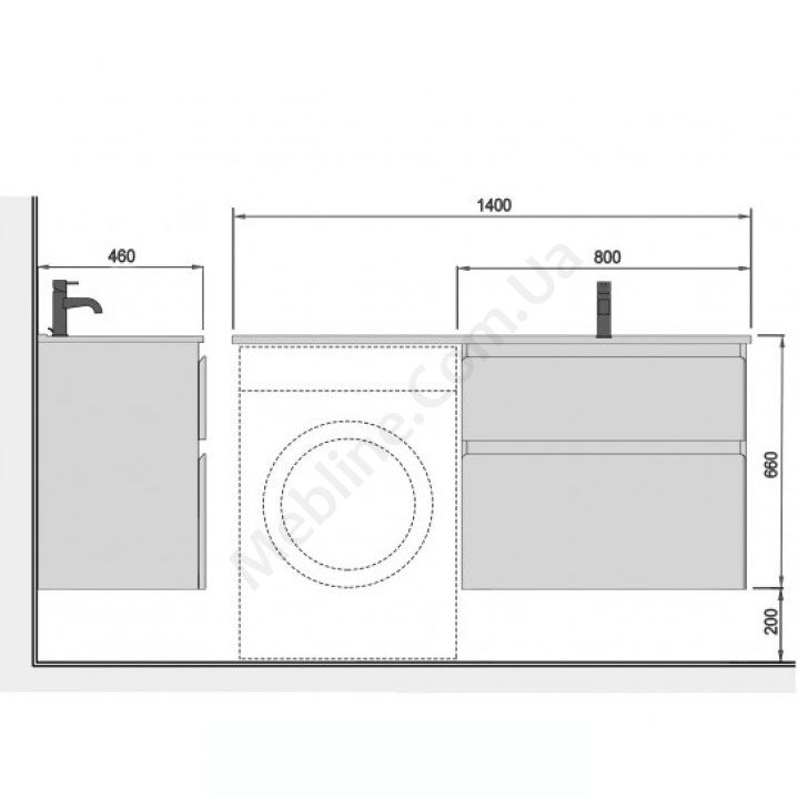 Тумба для ванної з умивальником та крилом над пральною машиною.