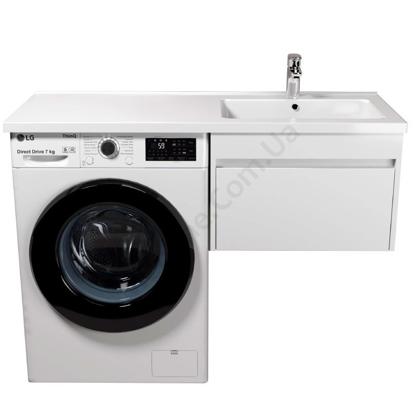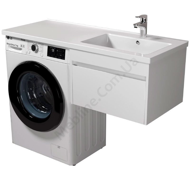 Підвісна тумба для ванної з умивальником та крилом над пральною машиною.